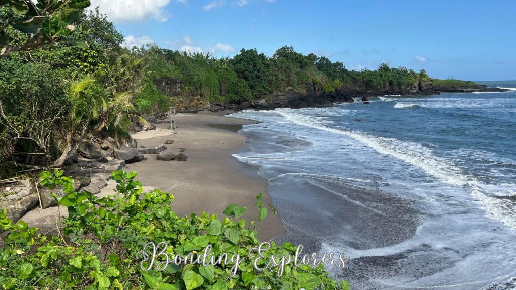 It features black volcanic sand, a wide shoreline, and a cliff with a seasonal waterfall (visible during the rainy season). Itโs quieter than tourist-heavy spots and a perfect getaway to enjoy some peace and quietness.