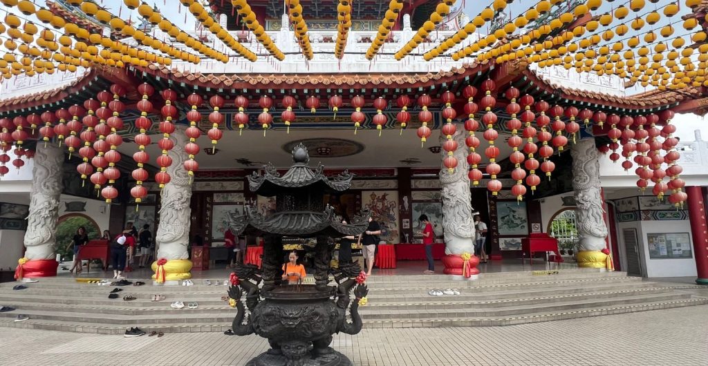 Chinese New Year is one of the biggest celebrations at the famous chinese temple. The temple is decorated with thousands of red lanterns, which light up the grounds and create a magical atmosphere. During this time, visitors come to the temple to pray for good luck and prosperity for the coming year. There are also cultural performances, such as lion and dragon dances, traditional music, and offerings made to Goddess Mazu and Guan Yin.